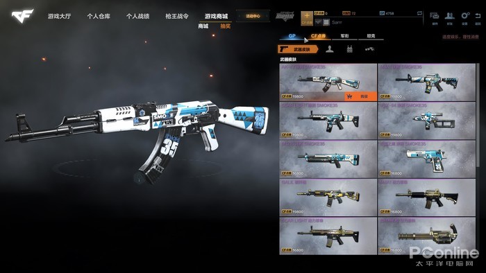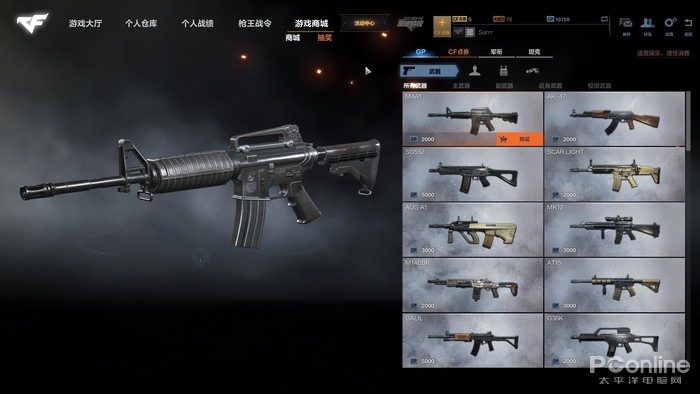 商城界面,枪械可以通过GP点购买,目前充值的点券只能购买枪械皮肤,但皮肤并不会影响枪械属性,这点可以说是非常良心了。