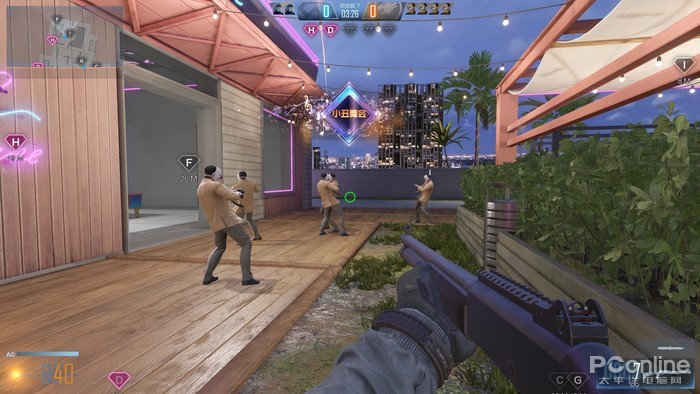 还有比较有趣的是小丑舞会模式和大逃杀模式,小丑模式是让玩家通过寻找舞池中舞姿不一样的小丑来分辨是否为敌方扮演,有点像是我们小时候玩得“123木头人”。顶楼大逃杀则是一方玩家扮演狙击手,另一方则为逃命人,通过层层的狙击,最后逃命人如果达到顶楼就可以使用火箭筒一招制敌。
