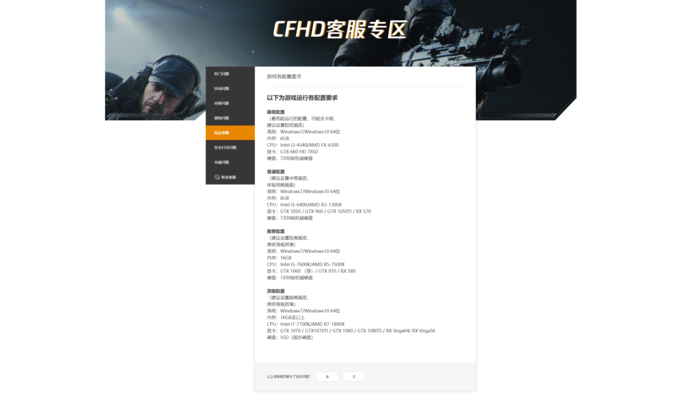 CFHD官方要求配置如图,可见其对电脑配置还是有一定要求的,尤其是顶级画质下显卡需要GTX 1080 Ti级别,可见虚幻3引擎和多人同时在线对于这样一款竞技FPS来说还是有着一定的压力。