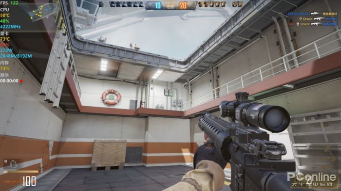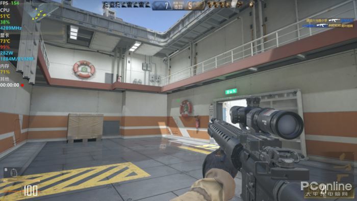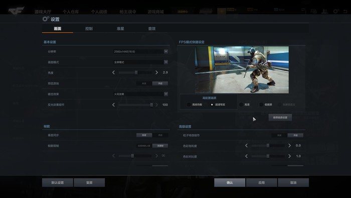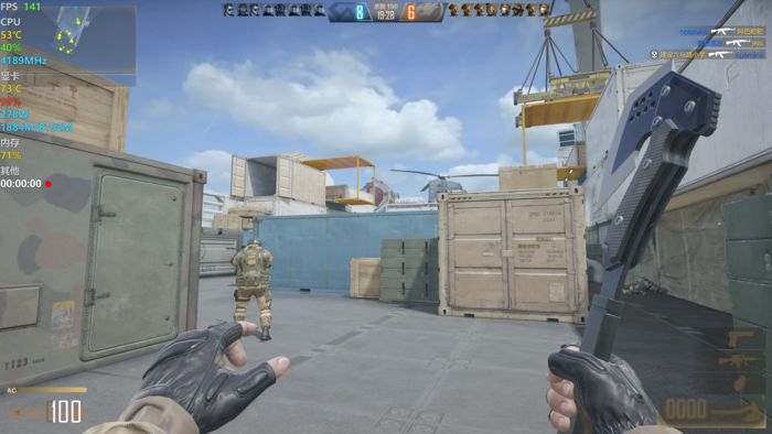 由于CFHD主打的就是高清画质,我们在游戏中就开启了“超清写实”的选项,其他画质选项拉满,同时关闭垂直同步,让游戏帧率最大程度地释放出来,游戏场景为目前最热门的团队竞技地图——运输船。